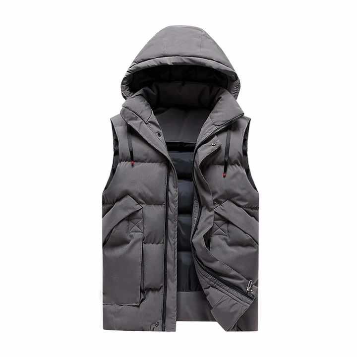 เสื้อแจ็คเก็ตพัฟเฟอร์แบบมีฮู้ดสำหรับฤดูหนาว ไม่มีแขน กันน้ำ เป็นมิตรกับสิ่งแวดล้อม ระบายอากาศ ป้องกันลม สไตล์ลำลอง ด้านหน้า 100% ไนลอน