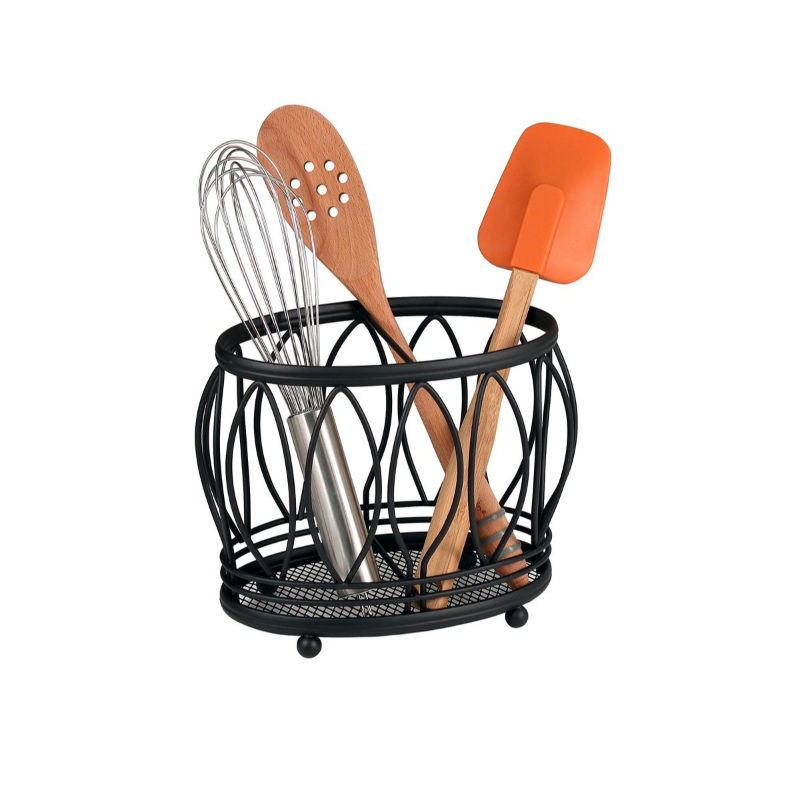 ที่ใส่ช้อนส้อมโลหะสีดำ ดีไซน์สวยงาม รูปทรงที่ดีที่สุด สำหรับวางบนเคาน์เตอร์ครัว ตกแต่งโต๊ะอาหาร งานเลี้ยง