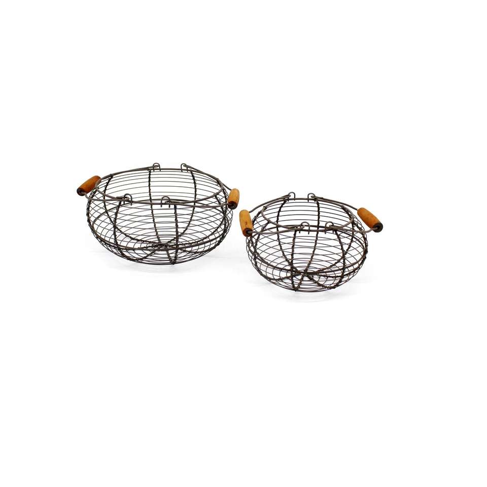 ตะกร้าใส่ไข่แบบมีหูจับ วัสดุโลหะสไตล์เรโทร สำหรับวางบนเคาน์เตอร์ครัว เก็บไข่สไตล์ฟาร์มเฮาส์