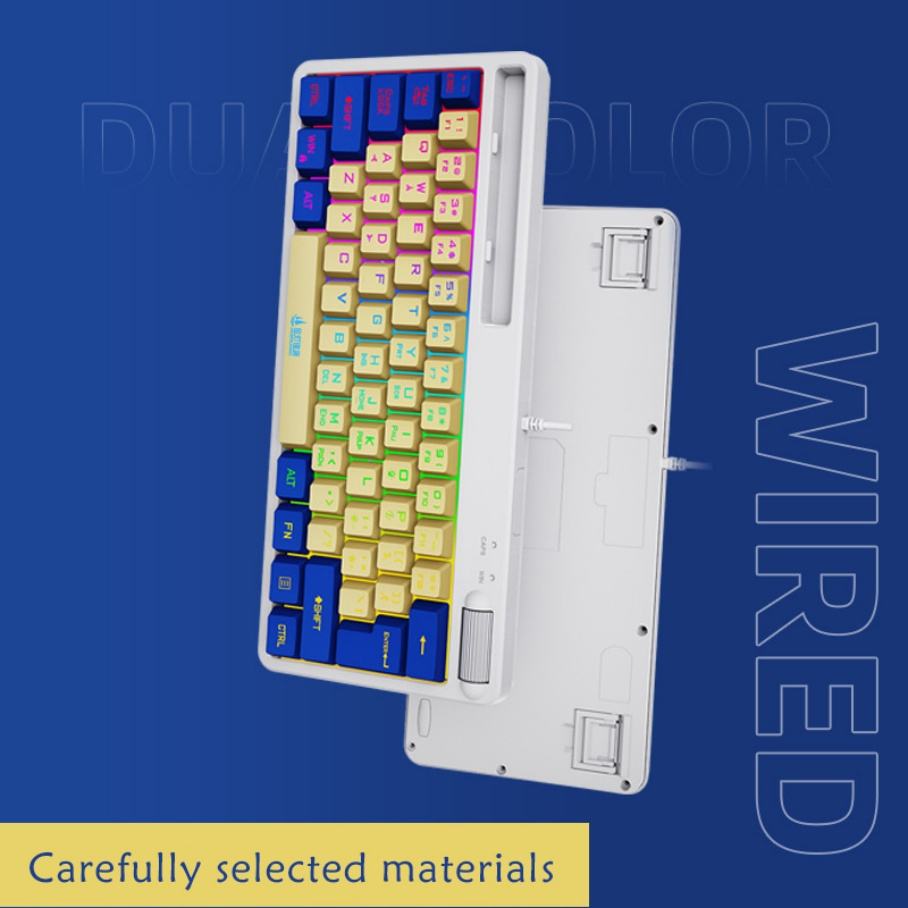 คีย์บอร์ดแบบมีสาย คีย์บอร์ดเกมมิ่ง RGB ขนาดกะทัดรัด คีย์บอร์ดเกมมิ่ง USB 61 คีย์ พร้อมสวิตช์สีแดง ปุ่มมัลติมีเดีย ปุ่มปรับระดับเสียง