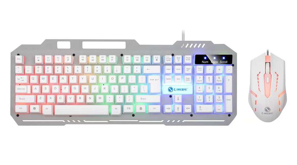 ชุดคีย์บอร์ดเกมมิ่งแบบมีสาย ให้ความรู้สึกเหมือนคีย์บอร์ดแบบกลไก พร้อมเมาส์ แผงโลหะ ไฟ RGB Backlit สำหรับเดสก์ท็อป แล็ปท็อป สำนักงาน และเกมเมอร์