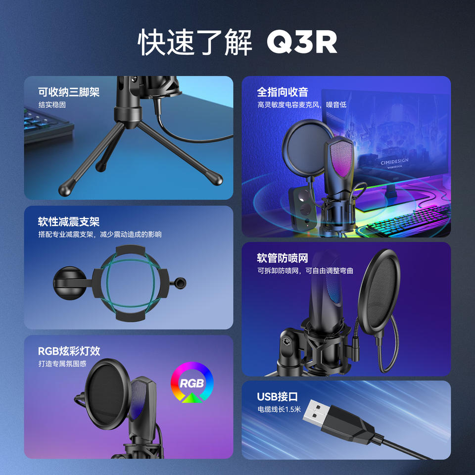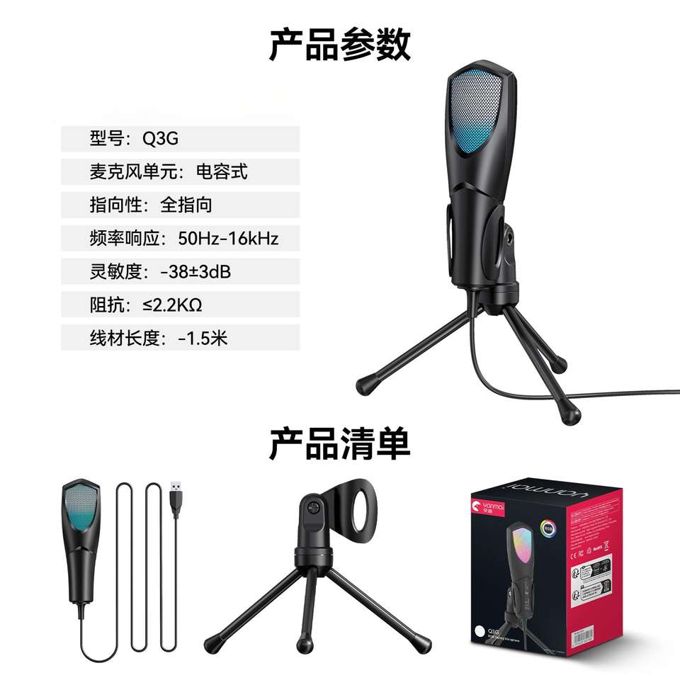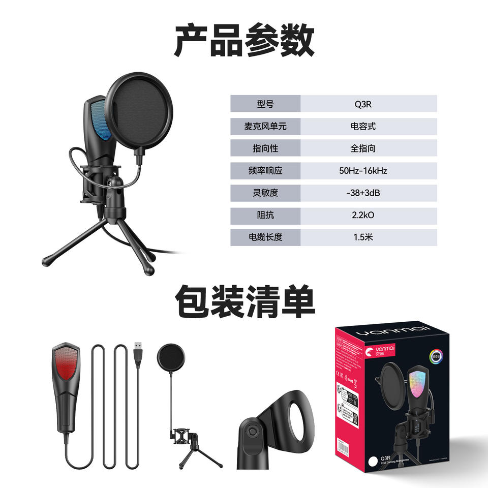 USB Microphone, Condenser Microphone, Light-weight, With RGB lighting, Portable, With LED LightsFeature