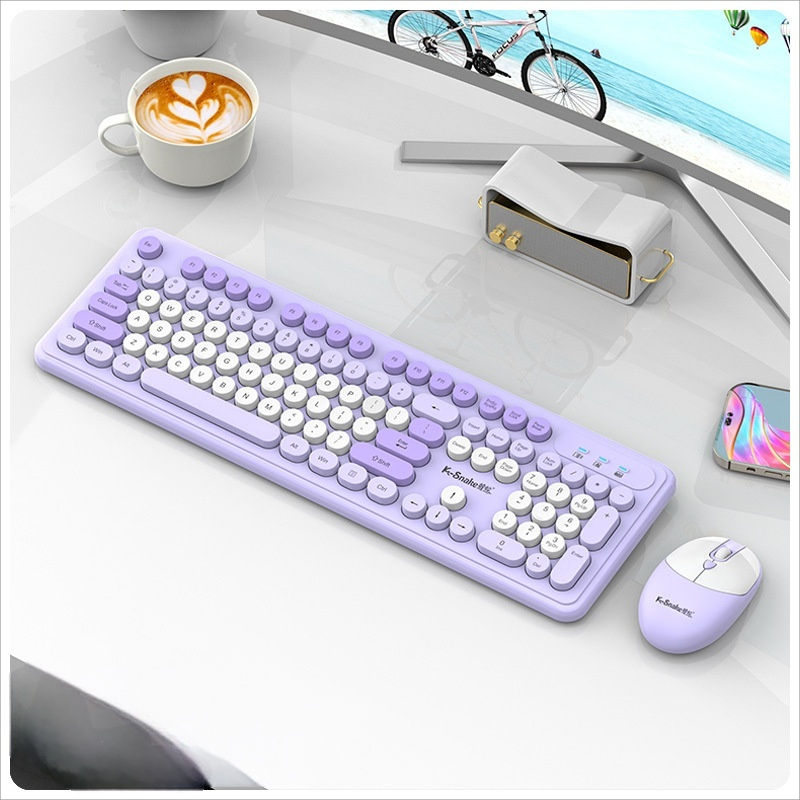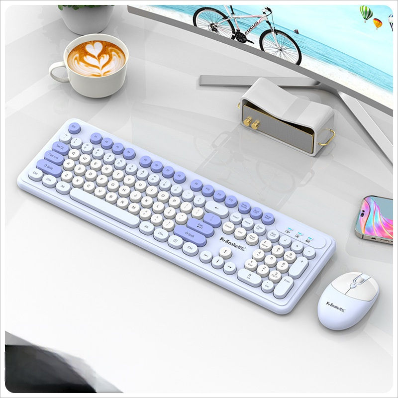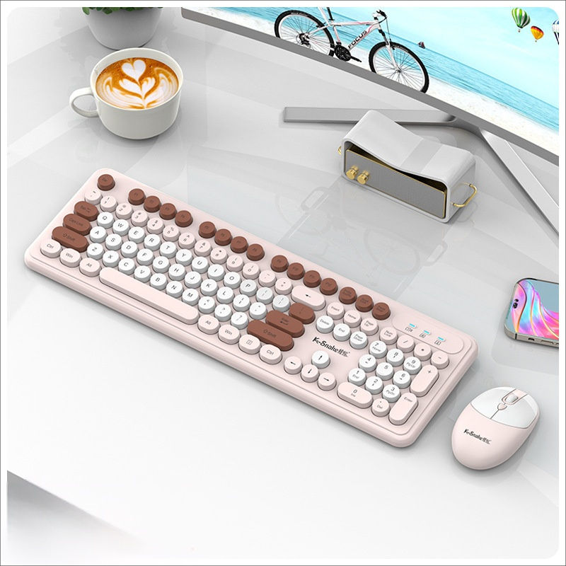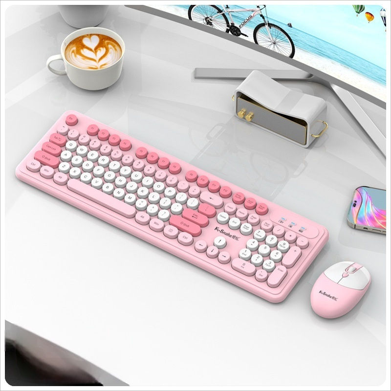 ชุดคีย์บอร์ดและเมาส์ไร้สาย 2.4G เงียบ ดีไซน์สวยงาม สำหรับผู้หญิง เหมาะสำหรับงานพิมพ์ในสำนักงาน