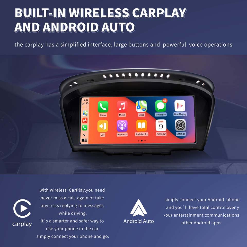 ระบบมัลติมีเดียไร้สาย Apple CarPlay Android 14 สำหรับรถยนต์ BMW ซีรีส์ 5 3 รุ่น E60 E61 E62 E63 E90 E91 E92 E93 ระบบ CCC CIC วิทยุ GPS นำทาง 4G