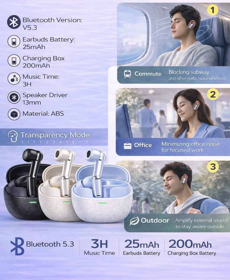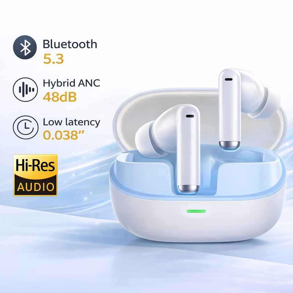 หูฟังบลูทูธไร้สาย 5.3 หูฟังอินเอียร์สำหรับเล่นกีฬา เสียงเบสหนักแน่น ควบคุมด้วยระบบสัมผัส ลดเสียงรบกวน พร้อมเคสชาร์จ