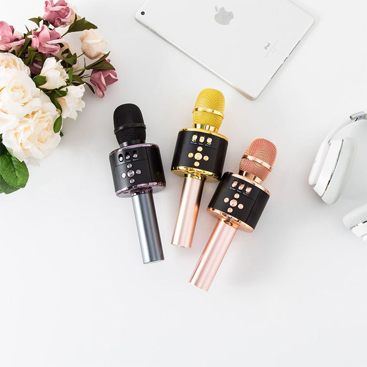ไมโครโฟนไร้สาย Bt แบบใช้มือถือ,ร้องเพลงรอบทิศทางไฟ Led หลากสีไมค์คาราโอเกะสำหรับเด็กร้องเพลงงานเลี้ยงวันเกิด