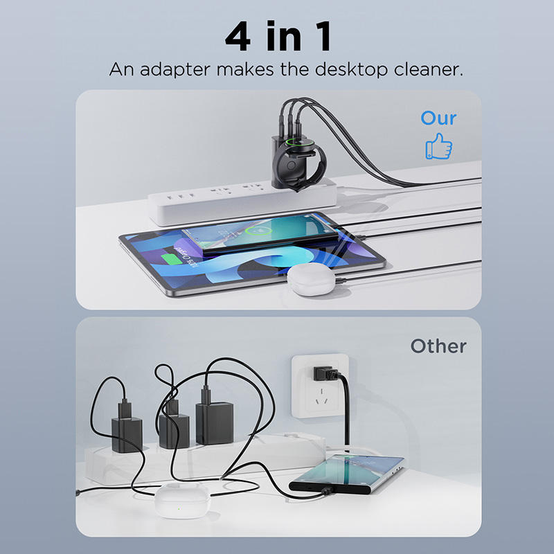 เครื่องชาร์จไร้สายสําหรับนาฬิกา airpods และโทรศัพท์ เครื่องชาร์จไร้สาย 4 in 1 เครื่องชาร์จเร็ว 45W สําหรับนาฬิกา redmi 4