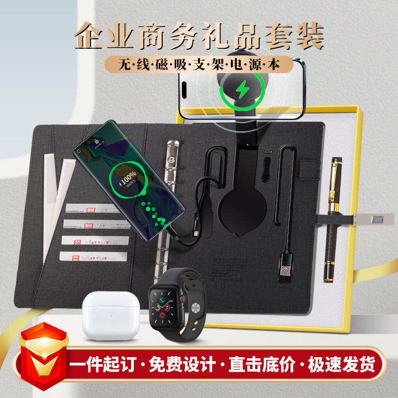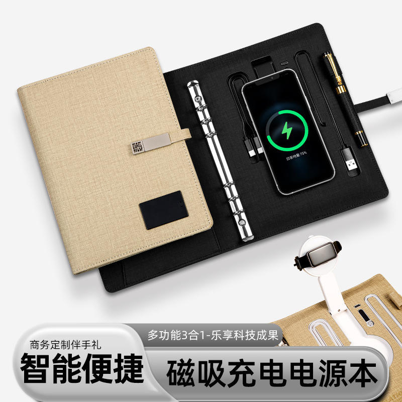 ชุดแล็ปท็อปพร้อมที่ชาร์จไร้สาย A5 สีเบจและสีดำ ของขวัญธุรกิจ พร้อมพาวเวอร์แบงค์ ปรับแต่งได้ สำหรับโปรโมชั่นสำนักงาน
