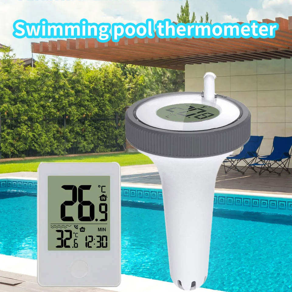 เครื่องวัดอุณหภูมิแบบดิจิตอลจอแสดงผล LCD แบบเชื่อมต่อไร้สายเครื่องวัดอุณหภูมิแบบลอยตัวสำหรับสระว่ายน้ำห้องน้ำเครื่องมือตู้ปลา