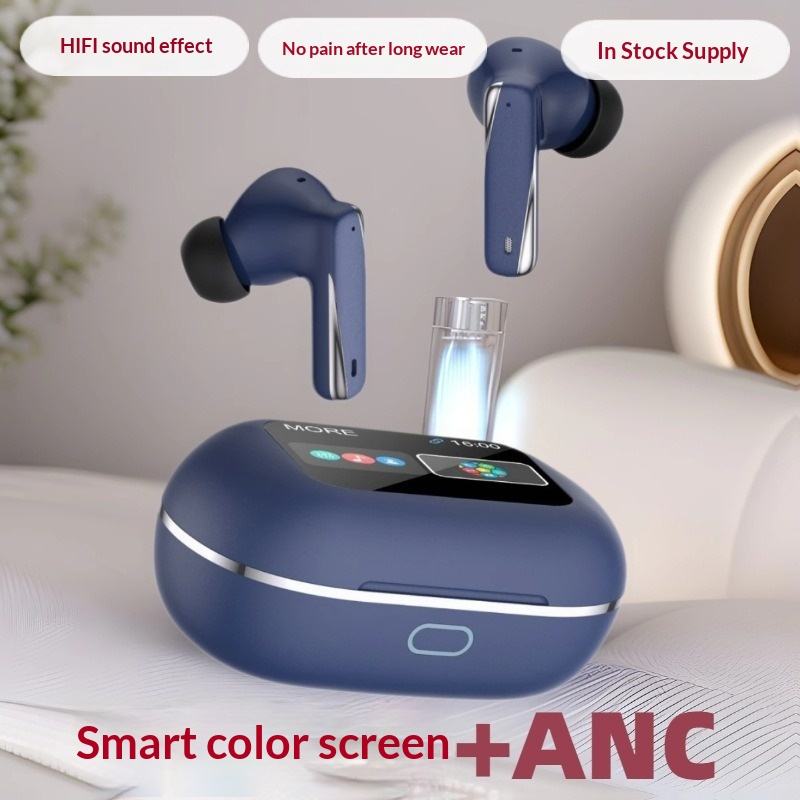 Wireless Earphone LCD Full Color Touch Screen ANC ENC Noise Cancelling Mics True Wireless Earbuds BT5.4 Bass Stereo Sound FCC CE