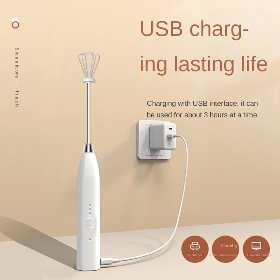 เครื่องตีฟองนมไฟฟ้าแบบมือถือไร้สาย,เครื่องผสมไฟฟ้า USB สำหรับกาแฟสีขาว