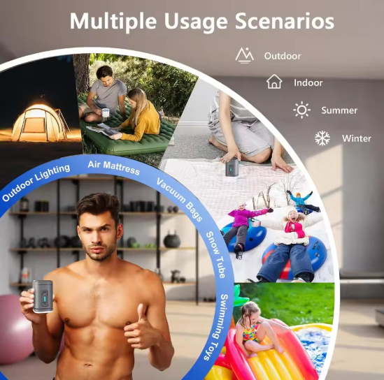ปั๊มลมไฟฟ้าไร้สายขนาดเล็กสำหรับสิ่งที่ต้องการลมแบบพกพา ชาร์จผ่าน USB ได้ ปั๊มลมอัตโนมัติ ปั๊มสุญญากาศสำหรับกระเป๋าเป้