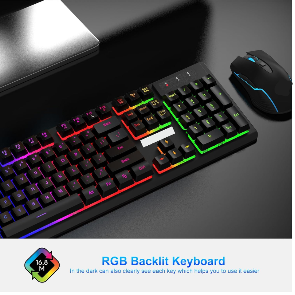 คีย์บอร์ดเล่นเกมแบบไร้สายคีย์บอร์ดและเมาส์แบบผสมผสาน RGB ไฟด้านหลังที่เงียบสงบตามหลักสรีรศาสตร์คีย์บอร์ดให้ความรู้สึกเชิงกลเมาส์สำหรับเล่นเกมสำหรับเดสก์ท็อป