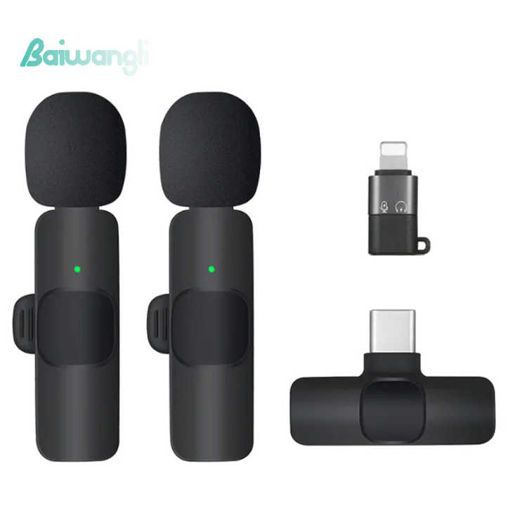 ไมโครโฟนไร้สายแบบพกพา 2.4GHz ระยะ 20 เมตร น้ำหนักเบา พร้อมไฟ LED สำหรับบันทึกเสียงบน iPhone และ Android