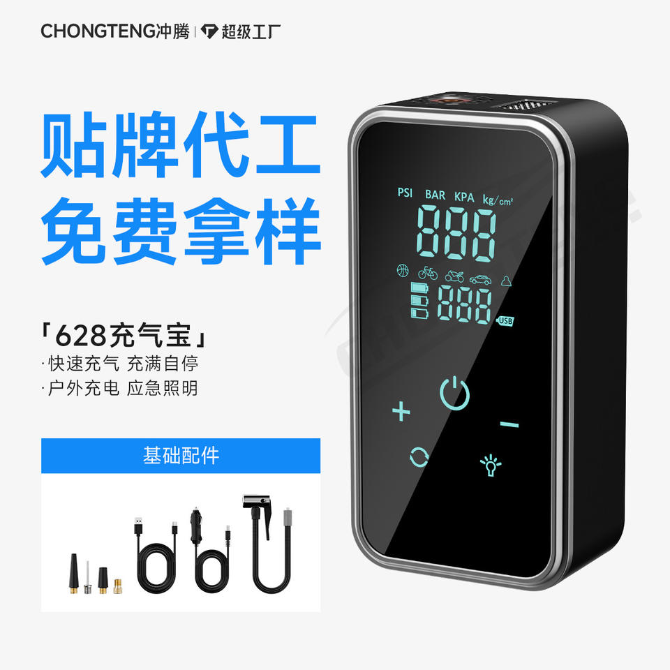 ปั๊มลมยางรถยนต์ไร้สายแบบพกพา 12V พร้อมหน้าจอ LED 19 กระบอกสูบ ปริมาณลมขั้นต่ำ 25 ลิตร/นาที