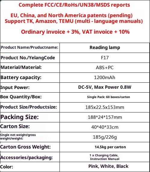 ไฟอ่านหนังสือแบบพกพาไร้สาย LED สีขาวแบบเต็มหน้า ชาร์จซ้ำได้ พร้อมรีโมทคอนโทรล ปรับความสว่างได้ หลายอุณหภูมิสี ใช้ในร่ม อ่านหนังสือบนเตียง