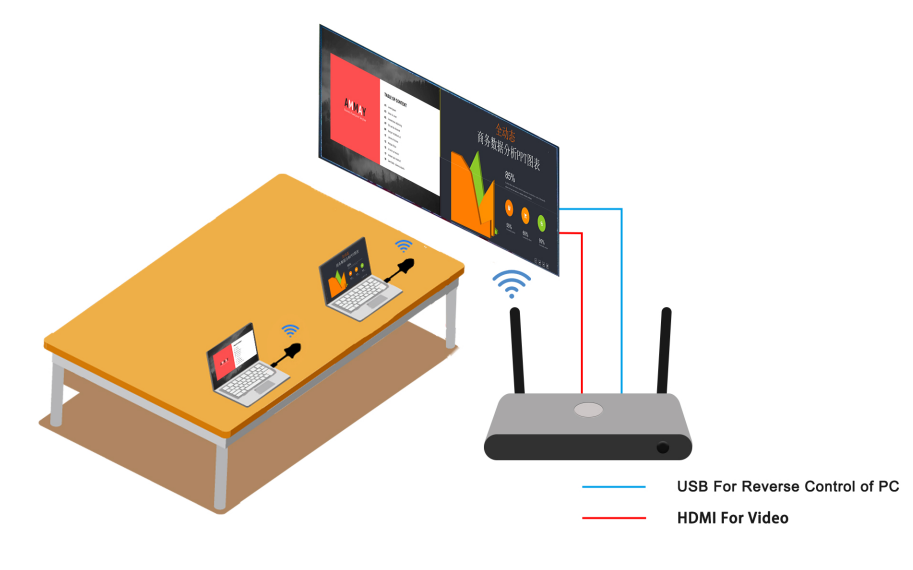 ระบบการนำเสนอแบบไร้สาย byom รองรับจอแยก2จอสำหรับห้องประชุมโปรเจคเตอร์