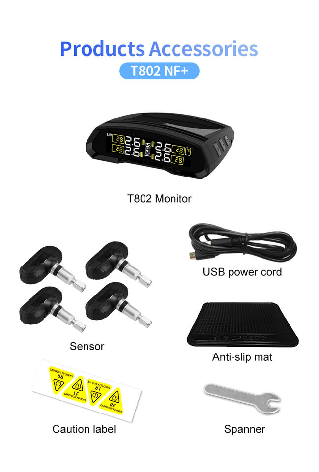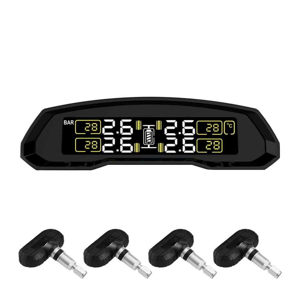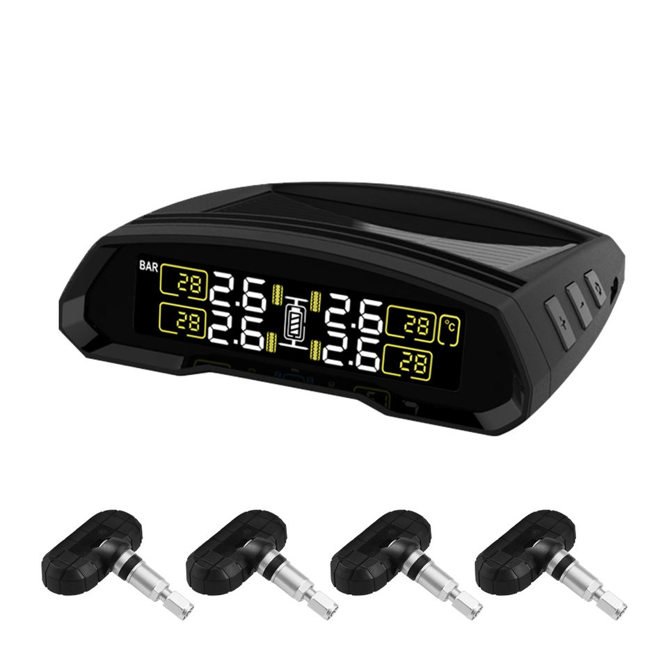 ระบบตรวจสอบแรงดันลมยางแบบไร้สายพลังงานแสงอาทิตย์ 12V พร้อมเซ็นเซอร์วัดแรงดันสำหรับรถยนต์
