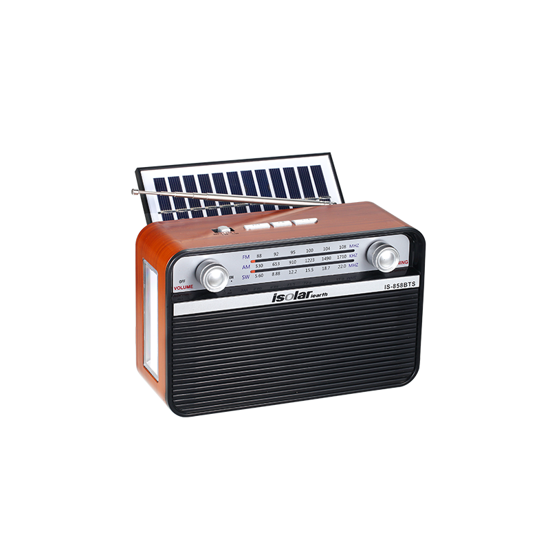 เครื่องเล่นเพลงคุณภาพเสียงสูงแบบไร้สาย ชาร์จด้วยแผงโซลาร์เซลล์ พร้อมวิทยุ FM AM SW 3 แบนด์ และลำโพงบลูทูธ สำหรับยุโรปและอเมริกา