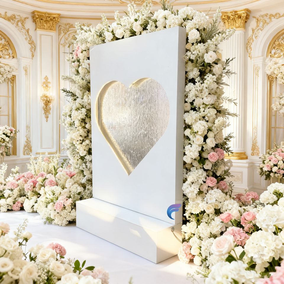 ฉากหลังน้ำพุไร้สายสแตนเลส/อะคริลิคทันสมัยสำหรับงานแต่งงานและงานตกแต่ง
