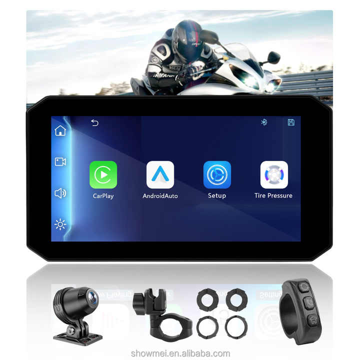 Tmps CarPlay ไร้สาย5 "IPS หน้าจอสัมผัสกันน้ำระบบนำทางแบบบลูทูธคู่รถจักรยานยนต์ CarPlay สำหรับมอเตอร์ไซด์