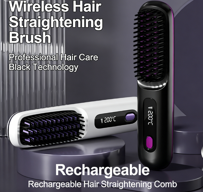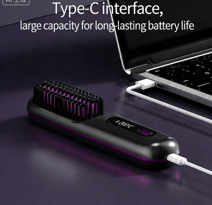 แปรงหวีผมตรงเซรามิก ให้ความร้อนแบบไร้สาย ชาร์จ USB ได้