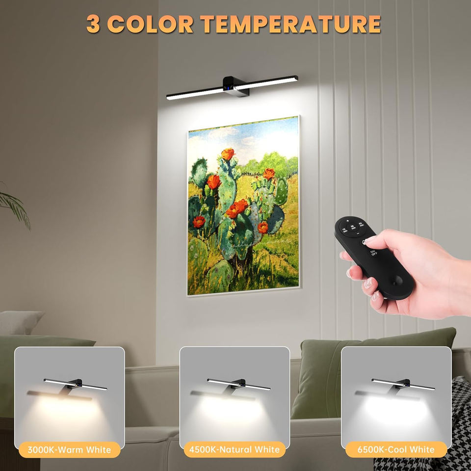 ไฟติดผนังไร้สายสำหรับภาพวาด พร้อมช่องใส่แบตเตอรี่แบบถอดได้ โคมไฟปรับความสว่างได้พร้อมรีโมทตั้งเวลา สำหรับภาพวาดในแกลเลอรี