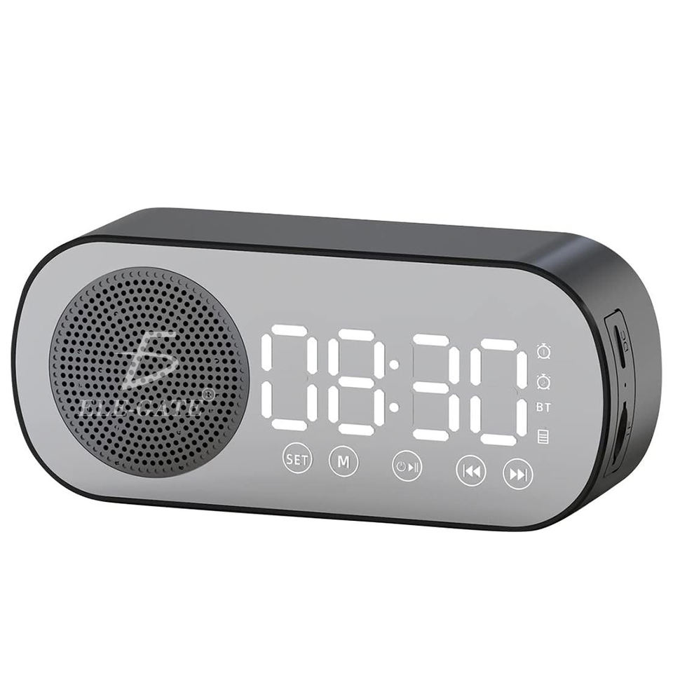 Wireless for Bluetooth 5.0 Stereo Speaker LED Microphone Waterproof Alarm Clock Mini USB/AUX Active Party Speaker Metal Plastic