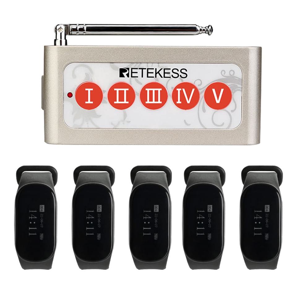 ปุ่มไร้สายกันน้ำและนาฬิกาเรียกพนักงานสำหรับร้านอาหาร บาร์ ครัว ระบบเรียกพนักงาน ระบบเรียกพนักงานเสิร์ฟ Retekess TD005