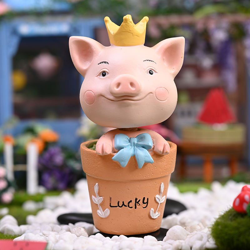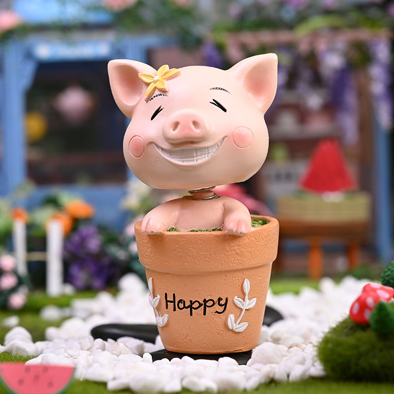 ของตกแต่งรถยนต์รูปหมูบ๊อบเบิ้ลเฮดขนาด 4 นิ้ว ทำมือเพ้นท์ลายการ์ตูนน่ารัก สไตล์สาวหวาน วัสดุเรซิ่น รับทำตามสั่ง