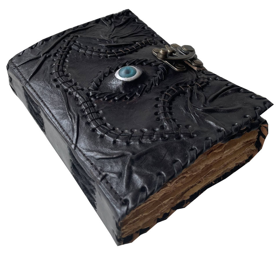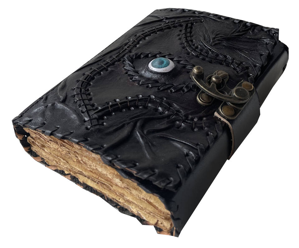 Witch Eye แฮนด์เมดสีดำหนังแท้วารสารโบราณสมุดสเก็ตช์คาถาหนังสือของเงาที่มีโบราณ C-LOCK
