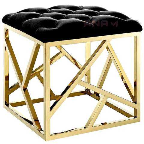 เก้าอี้ออตโตมันโครงไม้สีดำทันสมัยพร้อมพนักพิงสำหรับห้องนั่งเล่น งานแต่งงาน ใช้สำหรับนั่งตกแต่ง