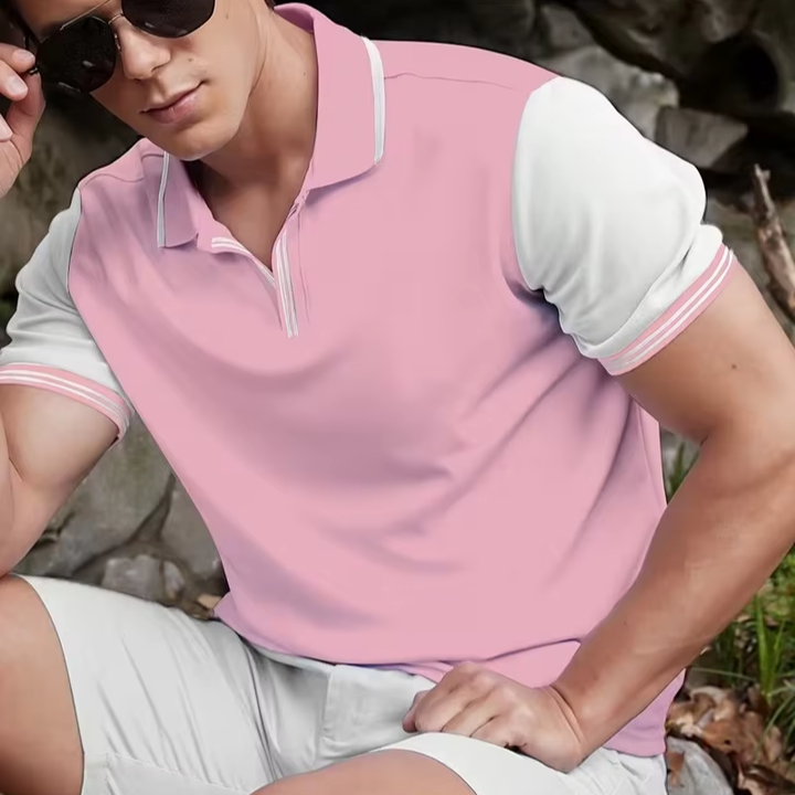 เสื้อยืดผู้ชาย 210gsm ผ้าโพลีเอสเตอร์ผสมคอตตอน ระบายอากาศได้ดี กันยับ สไตล์สมาร์ทแคชชวล รับสกรีนโลโก้ ผ้าเจอร์ซีย์ลายทาง