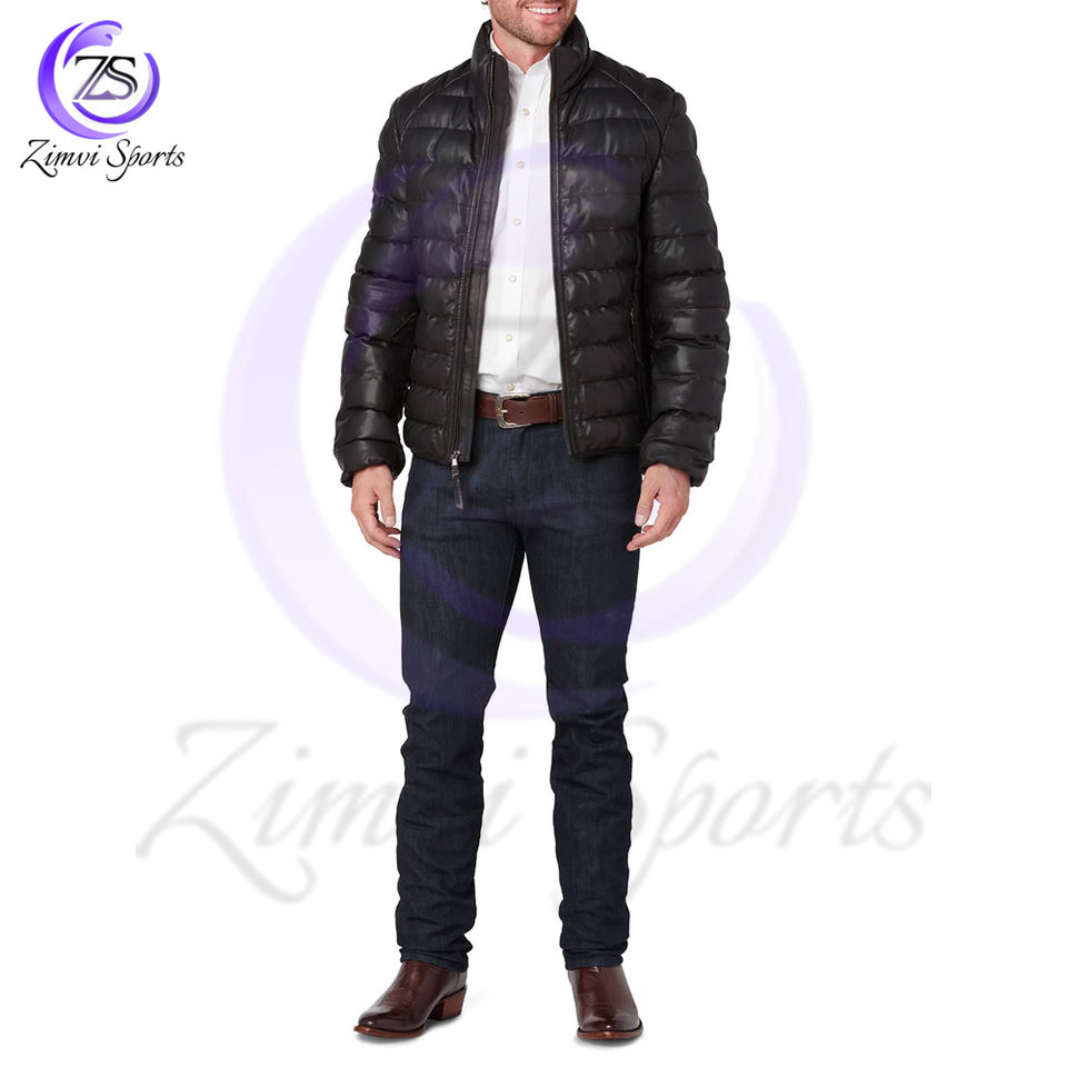 แจ็กเก็ตบุนวมทำมือสำหรับผู้ชายเสื้อแจ็กเก็ตสไตล์ซิปเต็มกระเป๋าสีดำมีกระเป๋าด้านข้างดีไซน์แบบพรีเมี่ยม