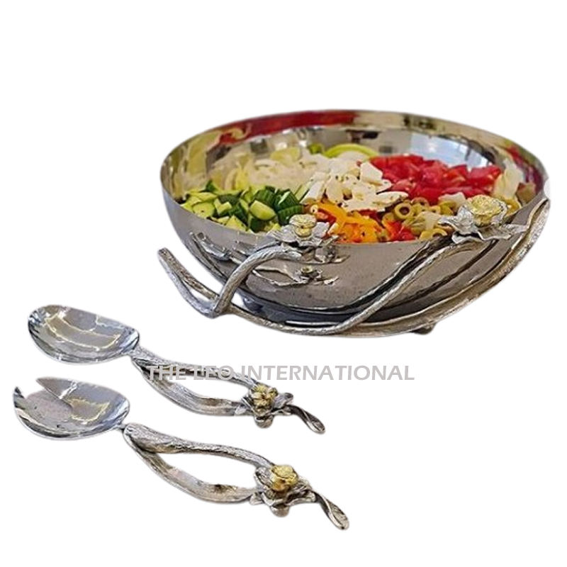 ชามสเตนเลสโลหะเคลือบเงาทำจากอลูมิเนียมขัดเงาพร้อมช้อนและส้อมชามรูปดอกไม้สุดหรู