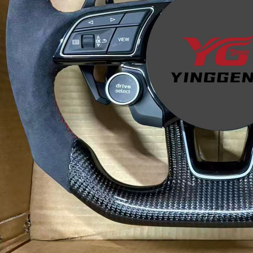 ด้วยปุ่มเริ่มต้นครึ่งพวงมาลัยคาร์บอนไฟเบอร์สำหรับรถ Audi R8 Q7 SQ3 A1 A3 RS3 A4 B9 A5 B9 A6 C7 A7 Q5 RS6 C8 Q3