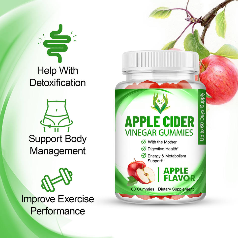 ด้วยรสชาติแอปเปิ้ลของแม่เยลลี่ ACV กับทับทิมพลังงานย่อยอาหารเพิ่มการเผาผลาญสนับสนุนแอปเปิ้ลไซเดอร์ Gummies
