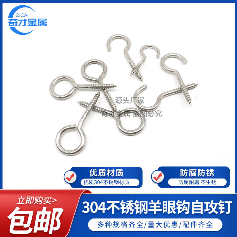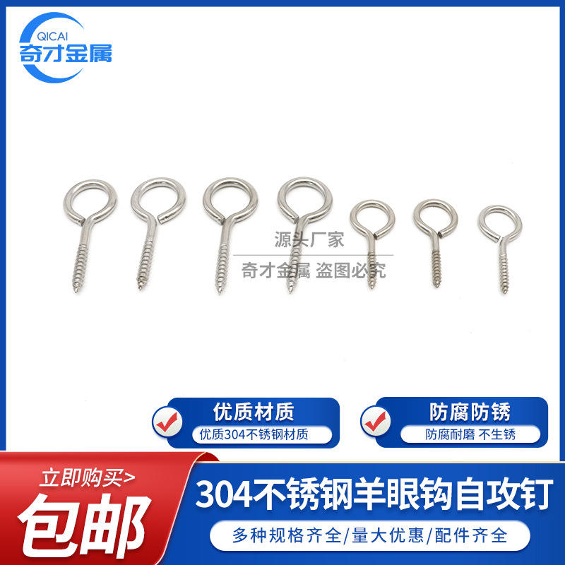สกรูเกลียวปล่อยปลายแหลม วิซาร์ดส์ เมทัล อาย สลิป ฮุค สแตนเลส 304 ขนาด M3 M4 M5 M6 M8 สำหรับงานอุตสาหกรรม ผิวขัดเงา