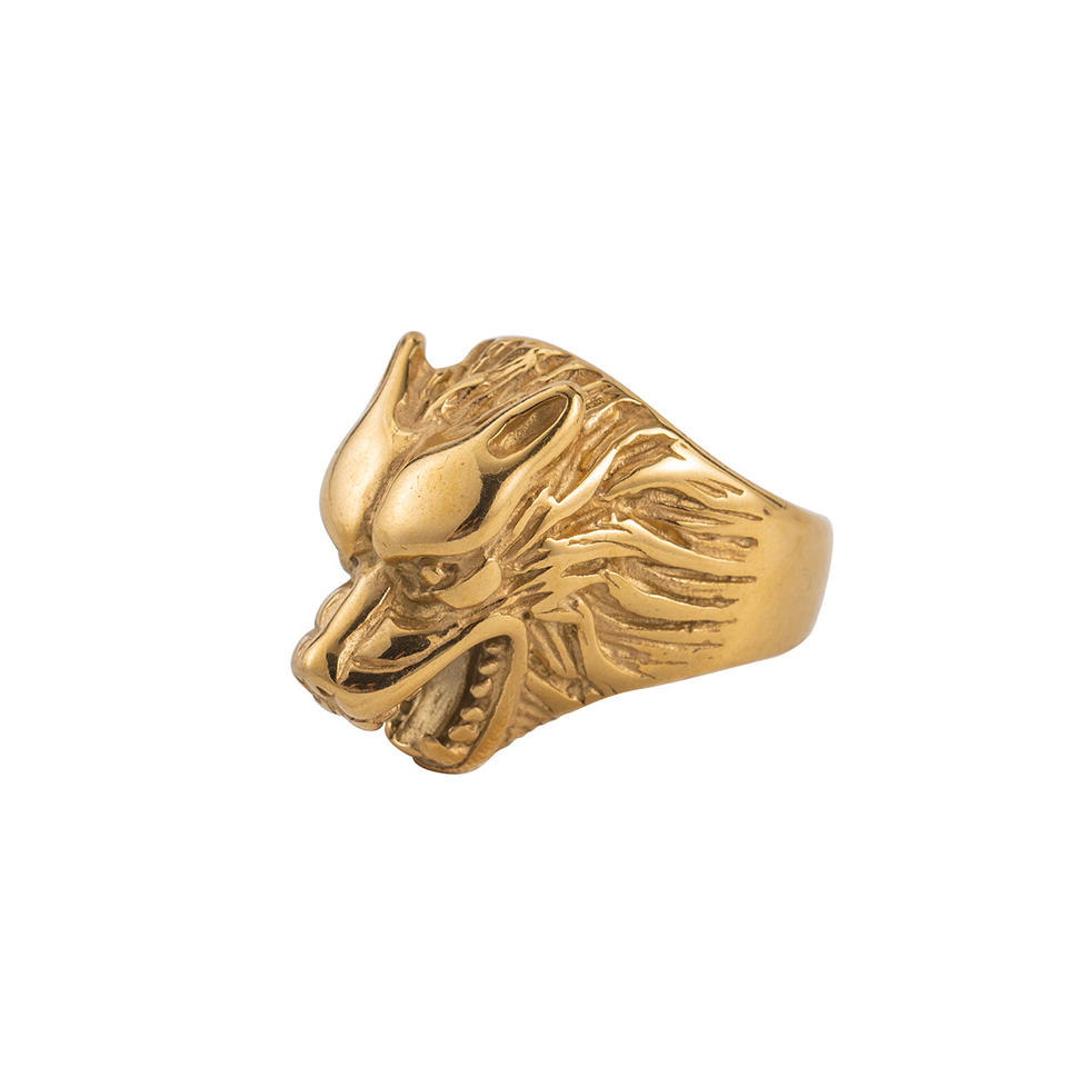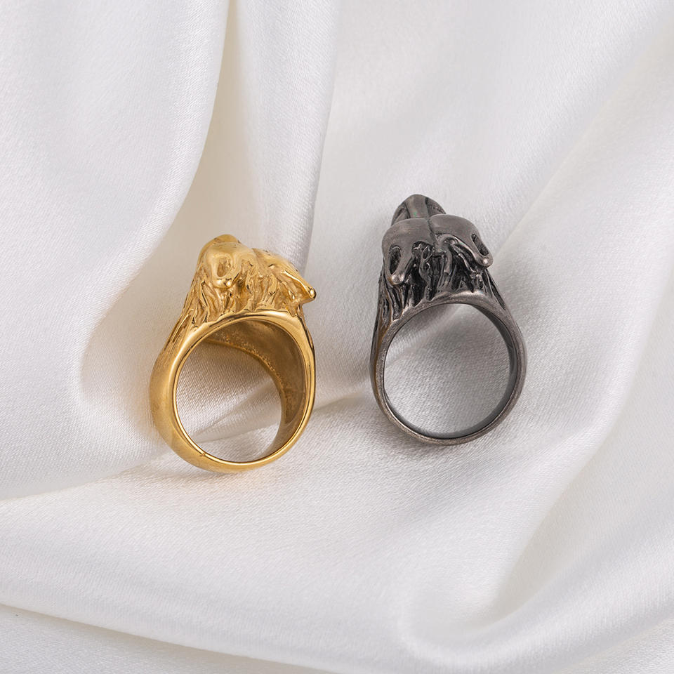 แหวนหัวหมาป่าโลหะไทเทเนียมเหล็กดีไซน์ 3 มิติสำหรับผู้ชายแฟชั่นเครื่องประดับของขวัญ