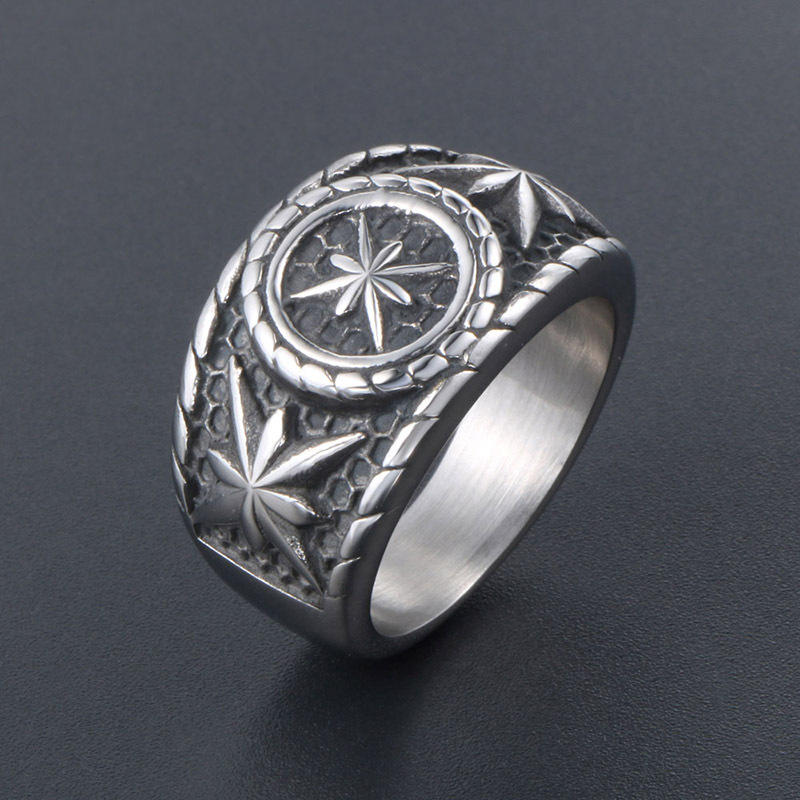 แหวนรูปดาวสไตล์เรโทร Wolf Warrior Jewelry สำหรับผู้ชาย รุ่น SA1033 สีเงิน ดีไซน์ทรงแปดเหลี่ยม เครื่องประดับแฟชั่น