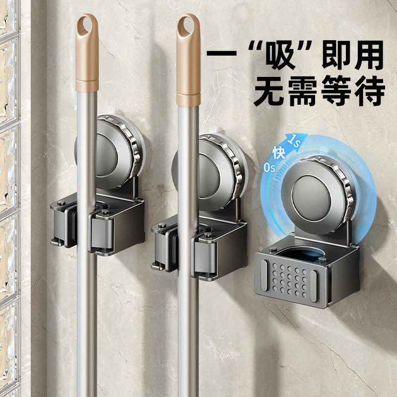 ที่แขวนไม้ถูพื้นแบบสุญญากาศ Wolf Warrior รูปทรงสี่เหลี่ยม ติดผนังโดยไม่ต้องเจาะ ประหยัดพื้นที่ ชั้นวางของในห้องน้ำ