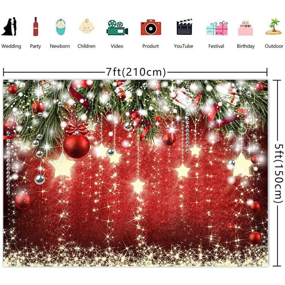 ฉากหลังถ่ายรูปลายดาวคริสต์มาสสีแดง Wollmix ขนาด 7x5 ฟุต สำหรับงานปาร์ตี้วันคริสต์มาส ต้นคริสต์มาส หิมะ แบนเนอร์ ของตกแต่งงานปาร์ตี้ครอบครัว พร็อพถ่ายรูป