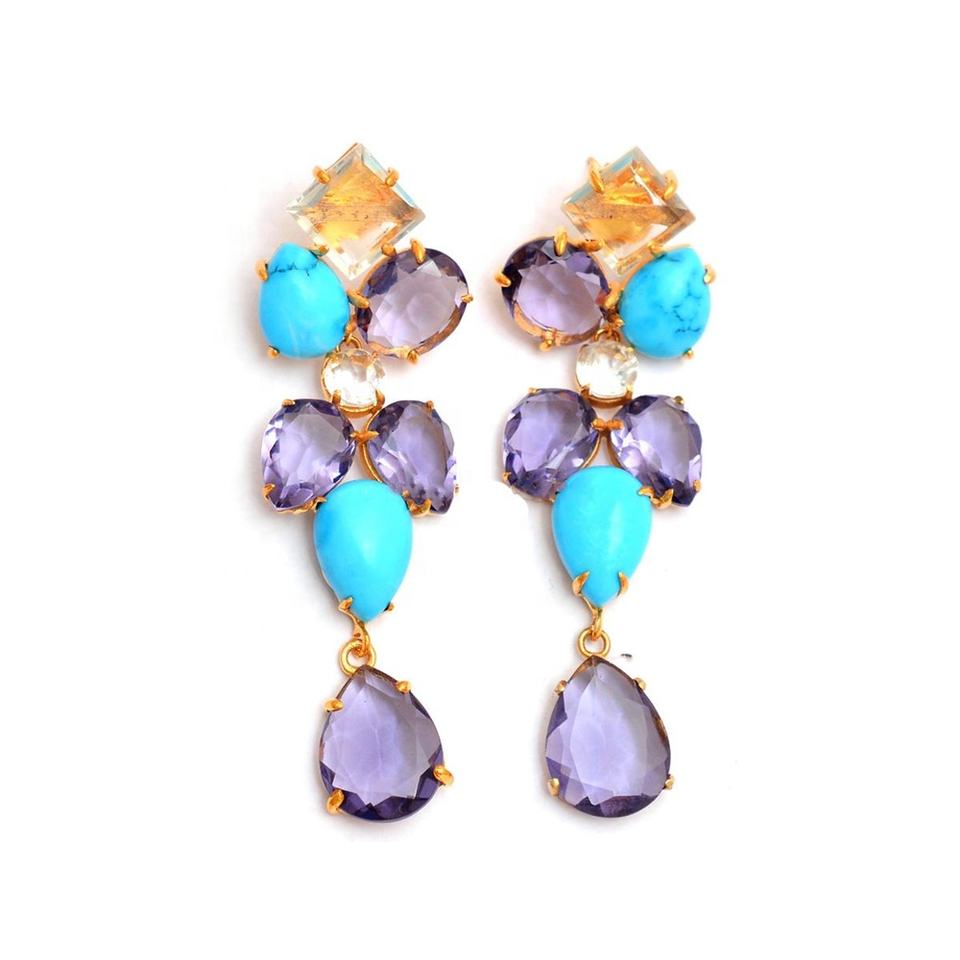 เครื่องประดับแฟชั่นสตรีพลอยสีม่วงอเมทิสต์เทอร์ควอยซ์สีม่วงธรรมชาติ925แข็งเงินสเตอร์ลิงชุบทองปาร์ตี้งานแต่งงาน