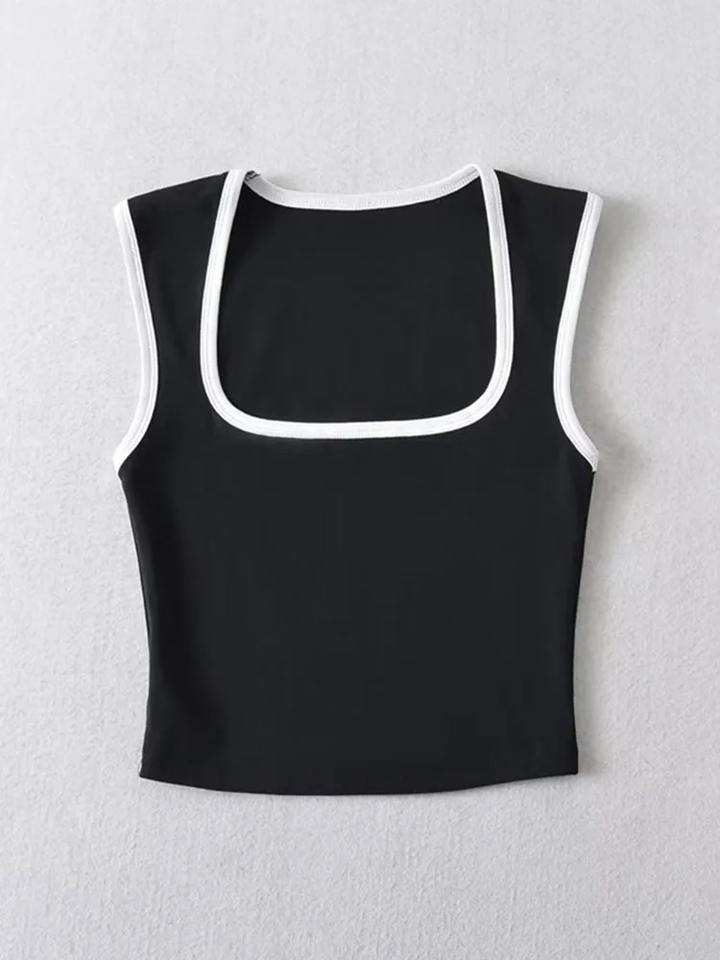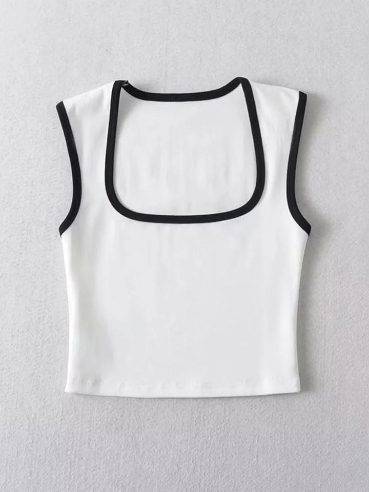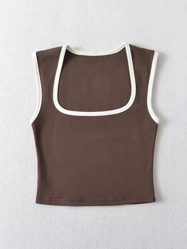 เสื้อแขนกุดลำลองคอเหลี่ยมสีล้วนสำหรับผู้หญิง2024 Y2k