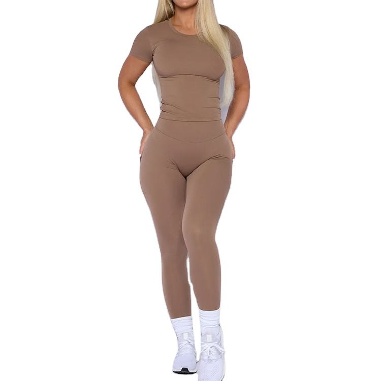 ชุดบรากางเกงขาสั้น2ชิ้นผ้าฟลีซสีพื้นระบายอากาศสำหรับผู้หญิงชุดออกกำลังกายในยิมสำหรับฤดูหนาว
