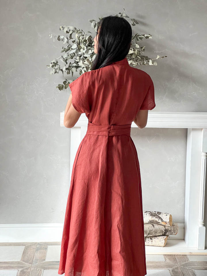 เดรสผ้าลินินแขนสั้นสำหรับผู้หญิงชุดเดรสผ้าลินินทรงหลวมระบายอากาศได้ดีชุดเดรสลำลองสำหรับผู้หญิงแม็กซี่แขนสั้นผ้าลินิน
