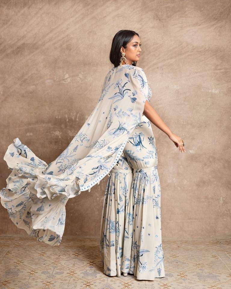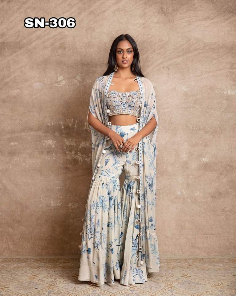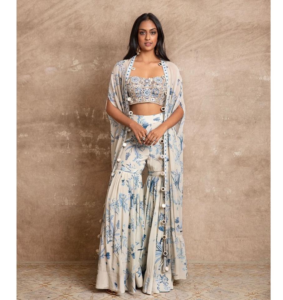 ชุดสูท Sharara สำหรับผู้หญิง,สูท Sharara สีขาวดีไซน์เนอร์ปาร์ตี้ชุดสูท Sharara