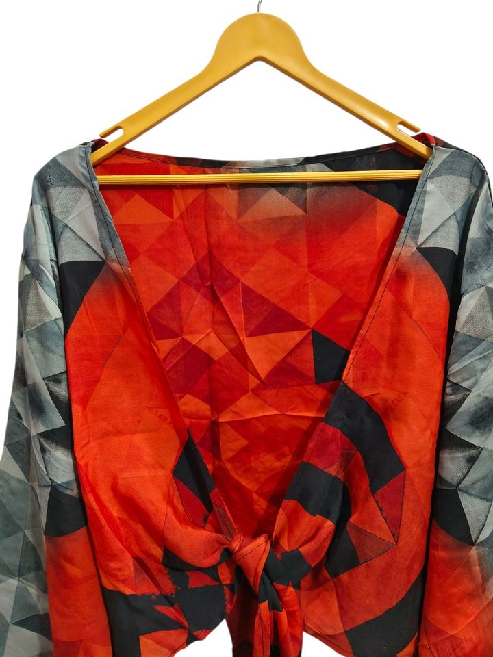 เสื้อเบลาส์แขนกระดิ่งผ้าไหมแบบนุ่มหรูหราสำหรับผู้หญิงเสื้อแจ็คเก็ตเอวลอยลายดอกไม้แบบอินเดียของขวัญสำหรับเสื้อสั้นของเธอ