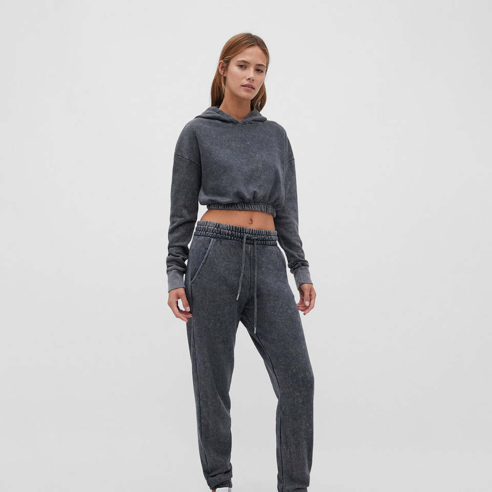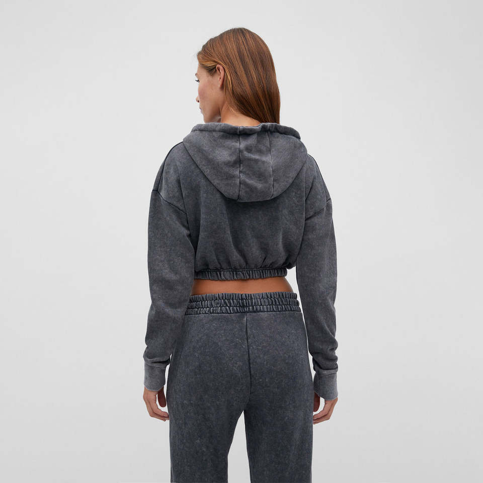 เสื้อสเวตเชิ้ตครอปผ้าฟลีซโอเวอร์ไซส์สำหรับผู้หญิง ผ้าฝ้าย 100% ล้างสีแบบแอซิดวอช สไตล์ดิสเทรสสั่งทำพิเศษ เสื้อฮู้ดดี้สำหรับฤดูหนาว