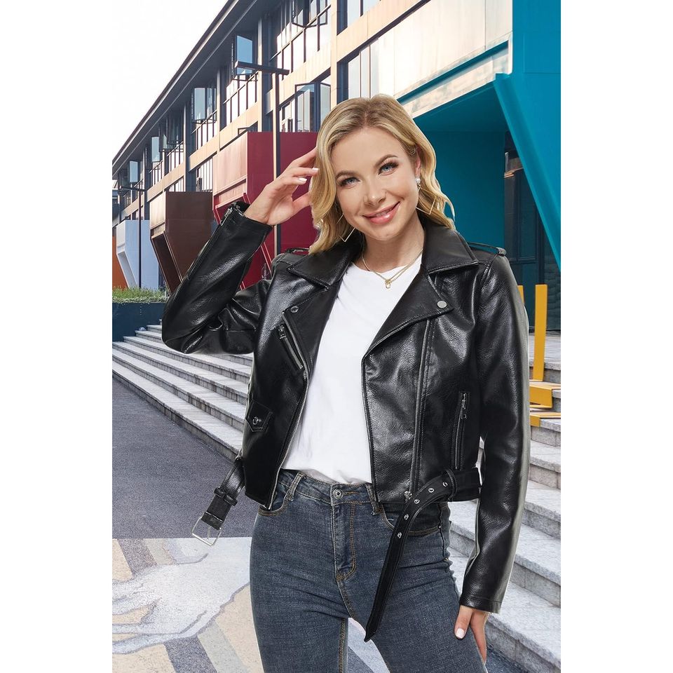เสื้อแจ็คเก็ตหนังแกะแท้ 100% สำหรับผู้หญิง แจ็คเก็ตนักขี่มอเตอร์ไซค์ พร้อมกระเป๋าซิป คุณภาพพรีเมียม